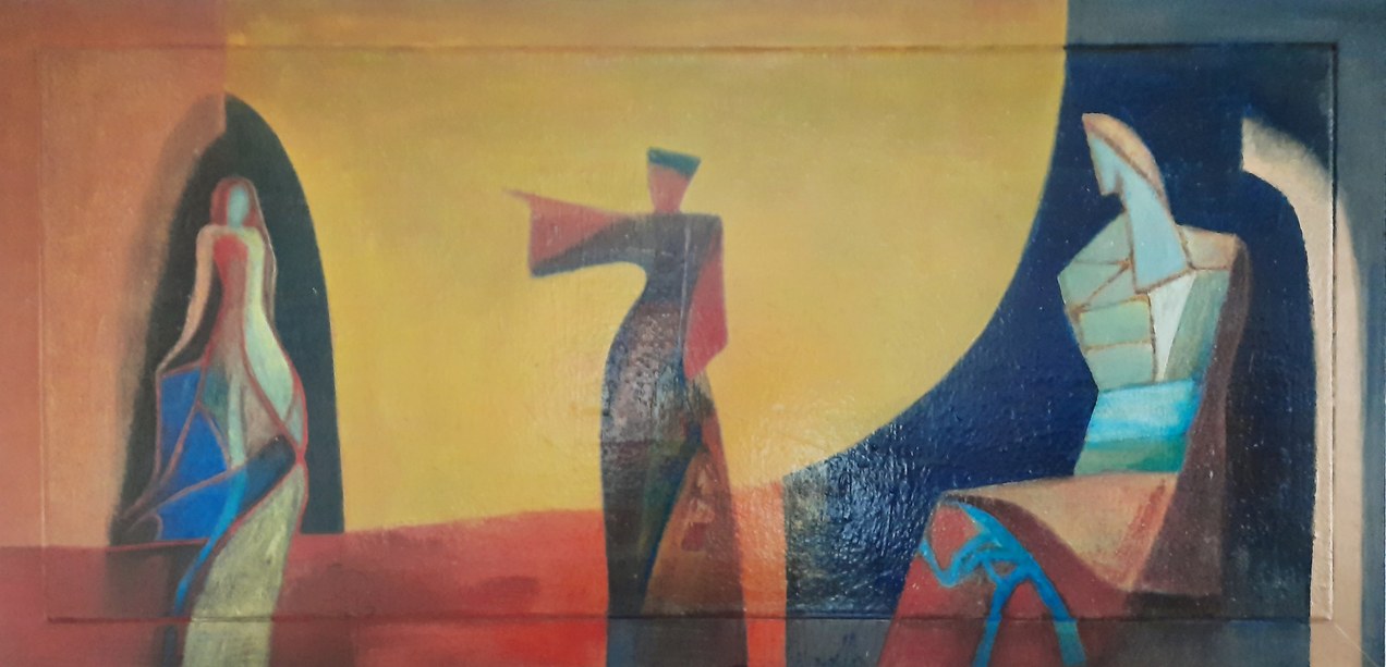 | Bonjour tristesse …is een nieuw werk dat te zien zal zijn in Paviljoen De Verbeelding, Zeewolde op de overzichtsexpositie van de Open Atelierroute. Afmetingen 75×115, acryl op doek. Op zaterdag 16-11 12.30-17.00 en zondag 17-11 12.00-17.00 uur zijn julie welkom in Atelier Kunst en meer, Schepenveld 40, 3891ZK Zeewolde om alle andere werken te bekijken. |